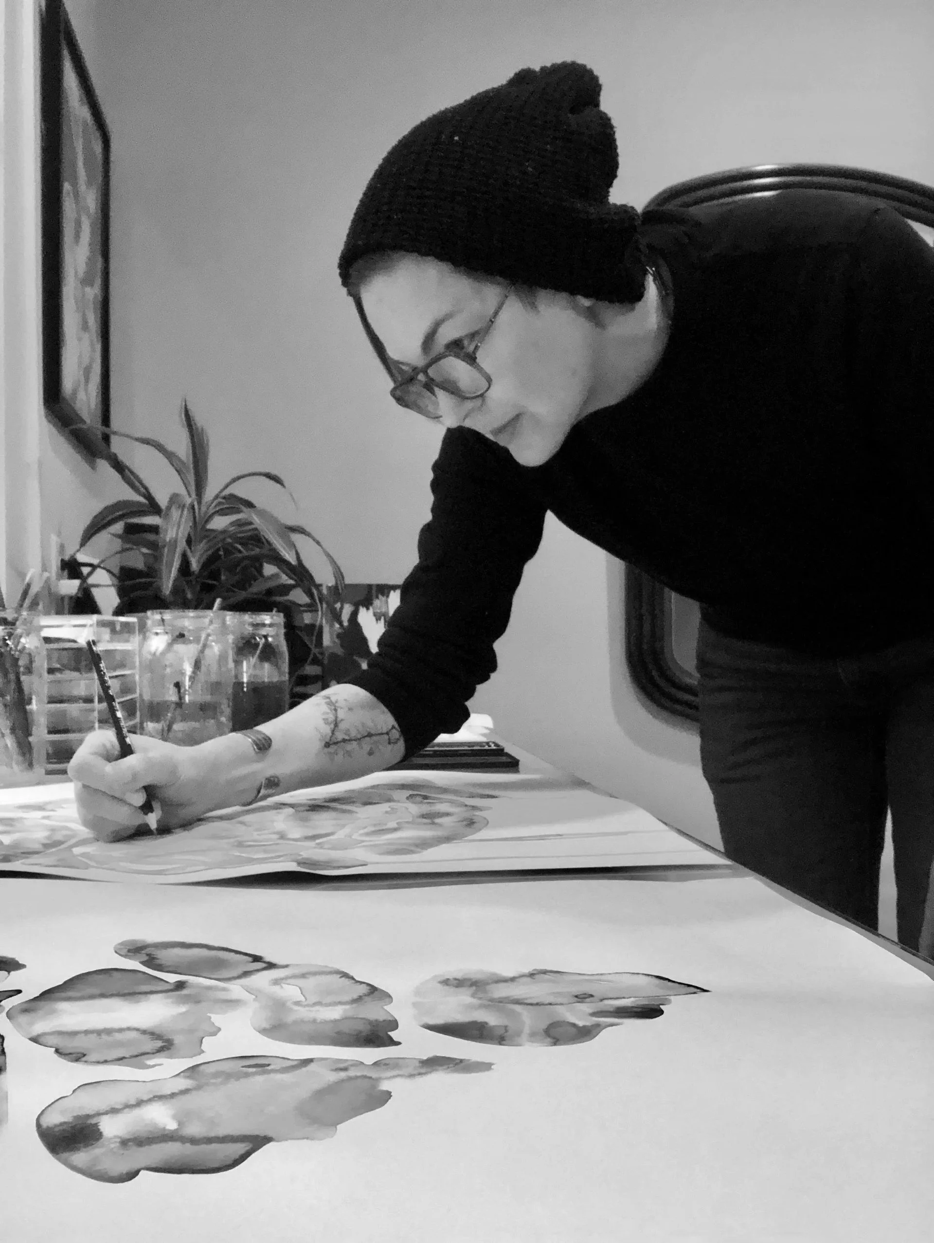 Driving through the Mississippi Delta as a kid we’d pass through the hills of Carrollton on the road to Greenwood, then south to Belzoni. I couldn’t wait for that part of the drive as I would get lost in the kudzu, observing magical creatures in the shapes emerging from the hills. I was drawn to their arched necks, hunched gestures, the dance of nature’s wild. I continue to welcome these figures as they reveal themselves through the colors and shapes on the page. I move paint intuitively, then layer photographs, paper and disparate found images, creating organic-like forms; unique manifestations that dwell somewhere deep within and that are so difficult to describe with words. Collage allows me to explore new narratives within the familiar while challenging limited representations of identity and history. I see my art as a celebration of the authentic self and I hope my work stimulates the viewer in allowing for some exploration of their own.